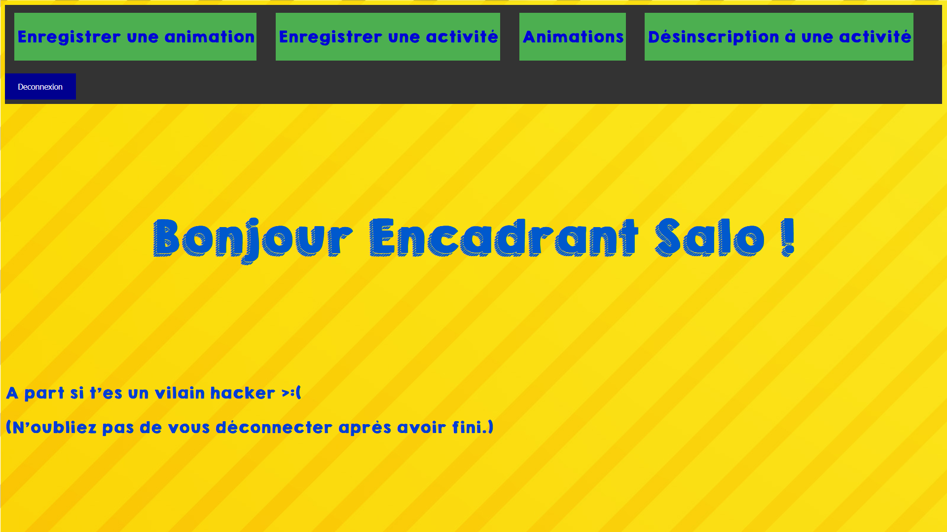 Selon le cahier de charges, l’encadrant est une personne qui propose, encadre, supervise une animation et