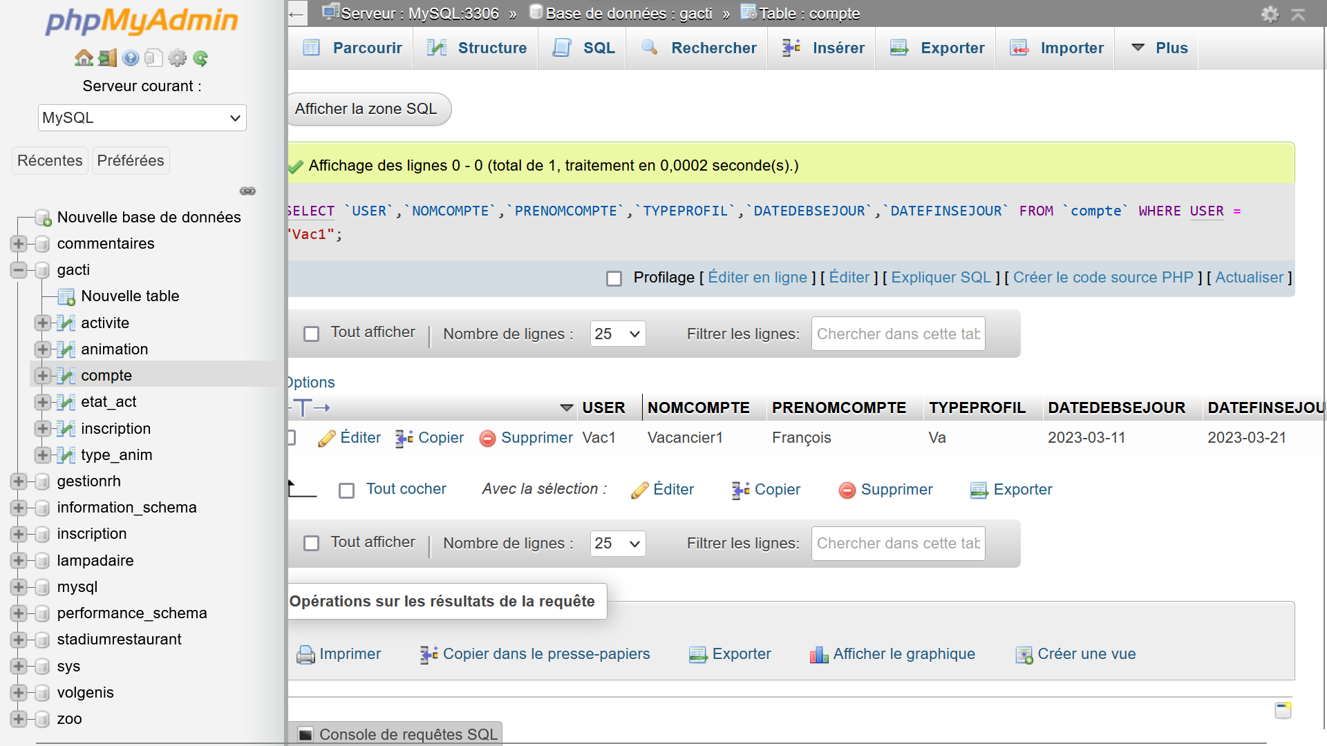 Selon le cahier de charges, le vacancier est une personne qui est hébergée pour un séjour sur une période donnée et qui réside dans le village de vacances. Le vacancier bénéficie d’un profil de connexion. A chaque nouveau séjour, correspond un nouveau vacancier.